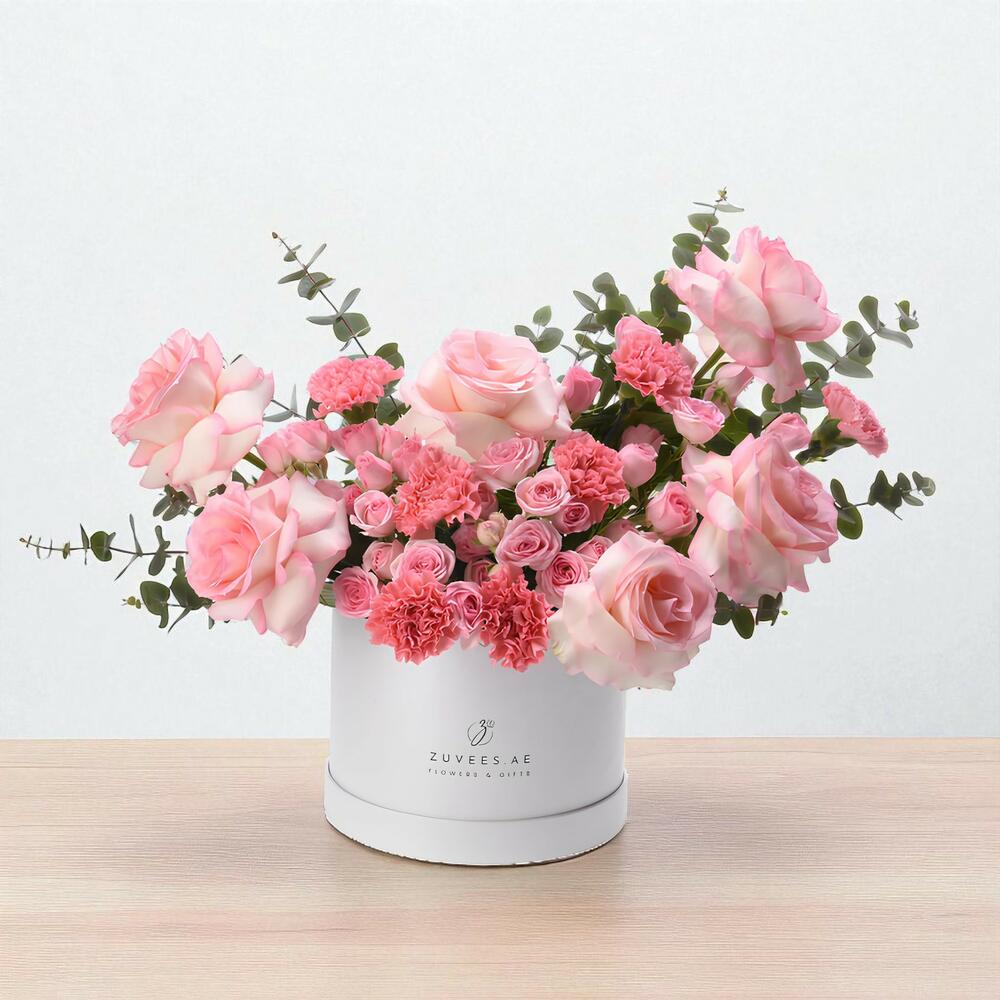 Pink Roseate Petals White Bloom Box is a soft and sophisticated floral arrangement that fits any occasion with timeless grace. Whether you’re celebrating milestones or sending a thoughtful surprise, this versatile flower box delivers warmth, beauty, and charm in every detail.