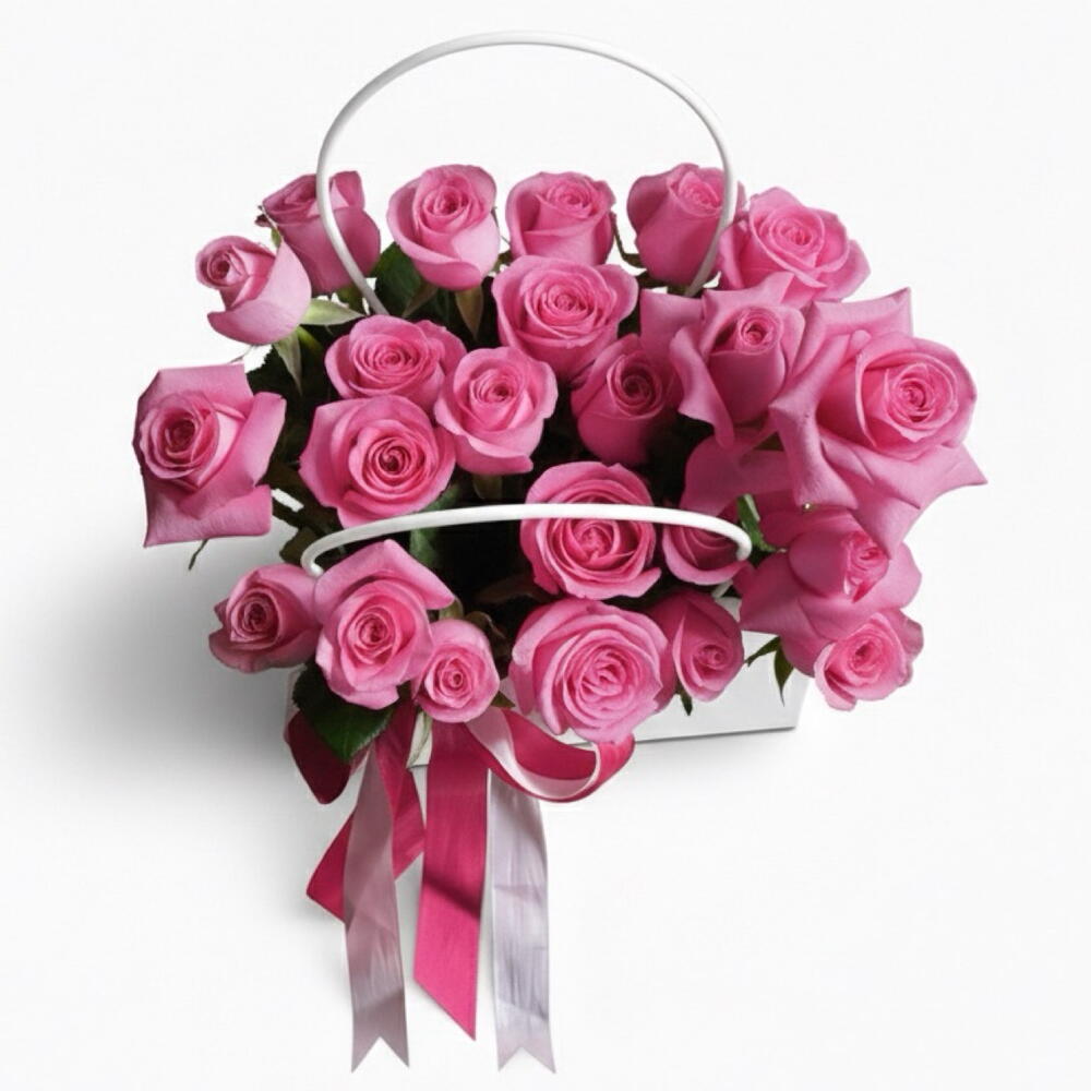 This beautiful Pink Rose Bag features 25 fresh pink roses elegantly arranged in a white flower bag, creating a soft, classy, and modern look. Pink roses symbolize admiration, sweetness, and gentle love, making this arrangement perfect for expressing care and affection. The crisp white bag enhances the natural beauty of the pink roses, giving the bouquet a fresh and elegant appearance. The flowers are neatly arranged to look full and balanced, making it easy to carry and ideal for gifting. Perfect for Valentine’s Day, birthdays, anniversaries, congratulations, thank-you gifts, or sweet romantic surprises, this pink rose bag is simple, stylish, and timeless. Product Details: • Total Roses: 25 fresh pink roses • Color: Pink roses • Packaging: White flower bag • Style: Soft, elegant, modern • Occasion: Valentine’s Day, Birthday, Anniversary, Romantic Gift A charming pink rose arrangement that feels light, lovely, and full of warmth 🌸