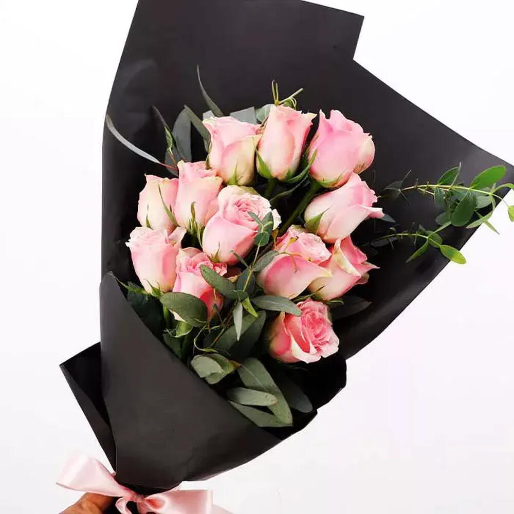 Beauty is in pink and here’s the beautiful pink roses in black wrapping. FLOWER CARE: Flowers always prefer to stay in temperatures between 8 to 22 degrees Celsius, and always avoid placing the flowers near direct sunlight, heating or cooling vents, directly under ceiling fans, or anywhere that has a hot temperature around it. You can remove the packing and allow them to breathe put it in a clean vase with water. Change the water daily Cut at least 2cm of the stems, remove the leaves below the waterline. While we always strive to ensure that products are accurately represented in our photographs, from season to season and subject to availability, our florists may be required to substitute one or more flowers for a variety of equal or greater quality, appearance, and value. Please be confident that we will make your flower arrangement look gorgeous. NOTE: We attempt to create bouquets to look like on the picture but in certain conditions, we may need to make flower substitutions. Please be confident that we will make your flower arrangement look gorgeous.