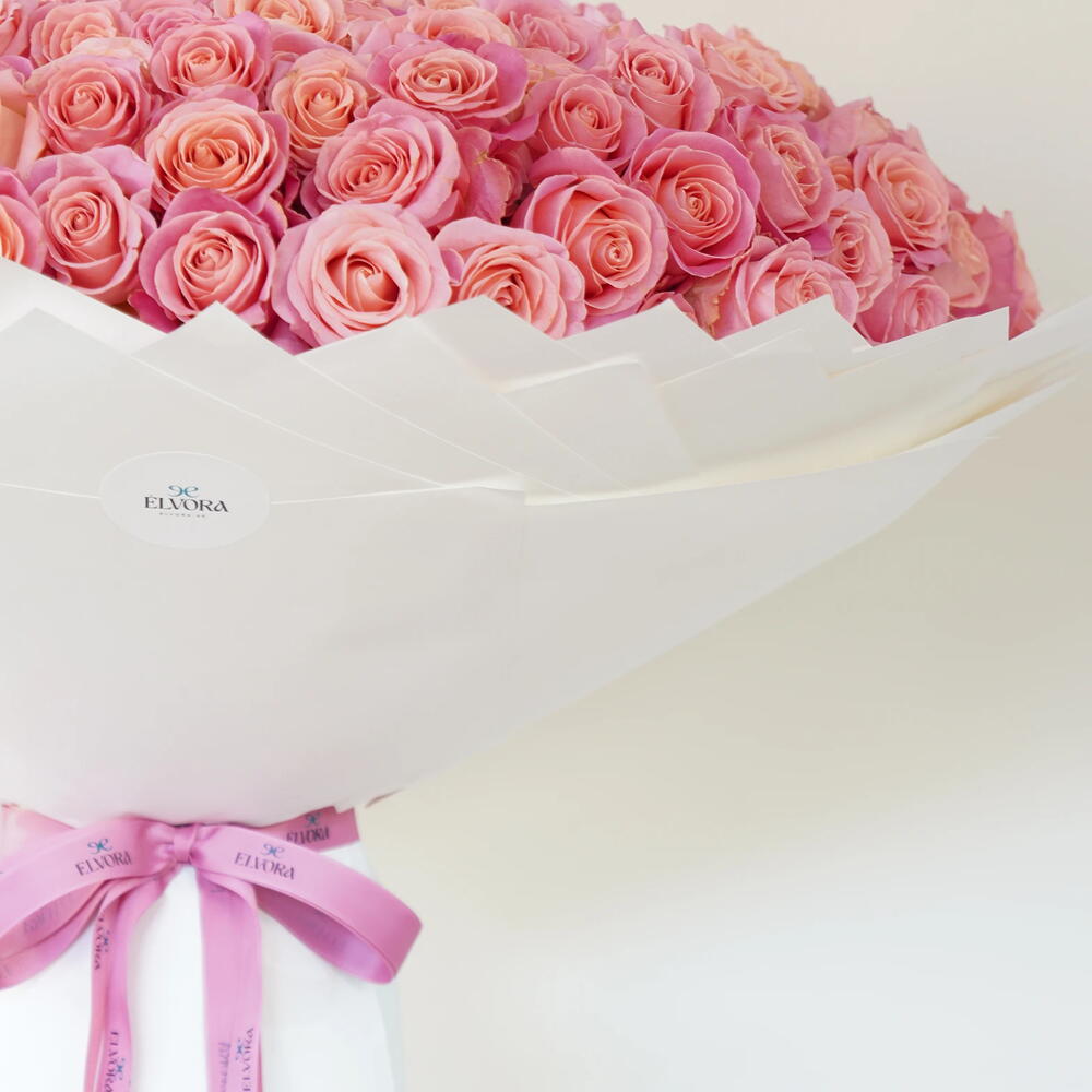Pink Roses Soft Flora Bouquet feels like a quiet moment of tenderness. Rows of soft pink roses unfold gently, each bloom echoing calm, warmth, and effortless beauty. The color palette is delicate yet confident—designed to feel comforting, graceful, and timeless. Wrapped in crisp white paper and finished with a blush ribbon, the arrangement tells a story of affection that doesn’t need grand words. It’s the kind of bouquet chosen for sincere emotions: a thank you, a soft apology, or a reminder that love can be gentle and powerful at the same time. Elegant Valentine’s Day flower arrangements for unforgettable moments.