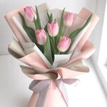 Delicate and graceful, this 5 Pink Tulip Bouquet is a sweet gesture of affection, elegance, and thoughtfulness. Wrapped in soft-toned blush, cream, and white paper and tied with a pastel satin ribbon, this bouquet is perfect for birthdays, anniversaries, Mothers Day, or simply brightening someones day. The gentle blush of fresh tulips adds charm and tenderness to any moment. Care Instructions: Trim the tulip stems at a slight angle before placing them in a clean vase with cold water. Keep the bouquet in a cool area away from direct sunlight and heat sources. Refresh the water daily and re-trim the stems every couple of days for extended freshness. Tulips may continue to grow and gently bend toward light—this is a natural part of their charm.