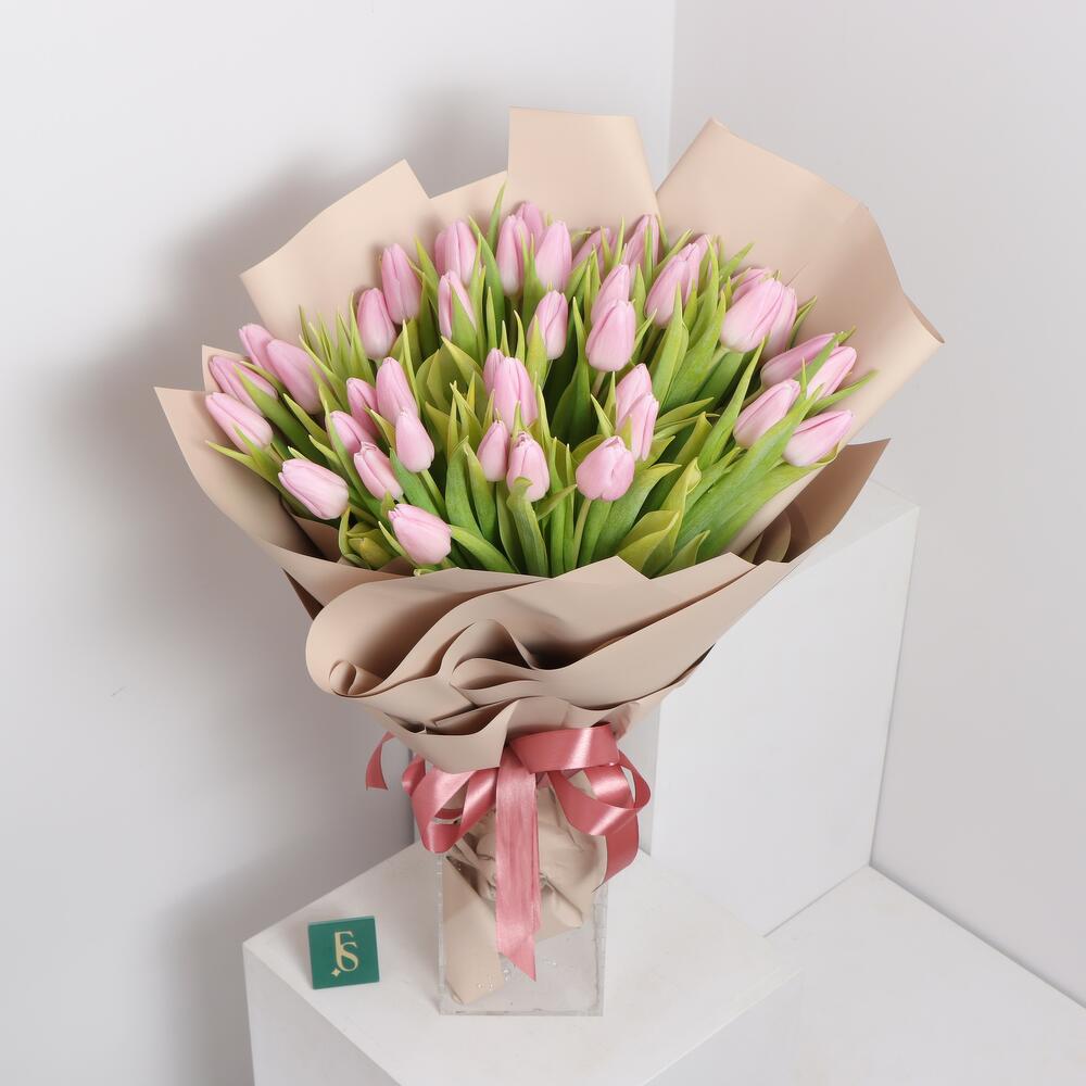 This stunning bouquet features a collection of premium pink tulips, each hand-selected by our skilled florists to ensure that only the freshest and most beautiful flowers are included. The pink tulips symbolize grace, elegance, and femininity, making this bouquet a perfect gift for any occasion.