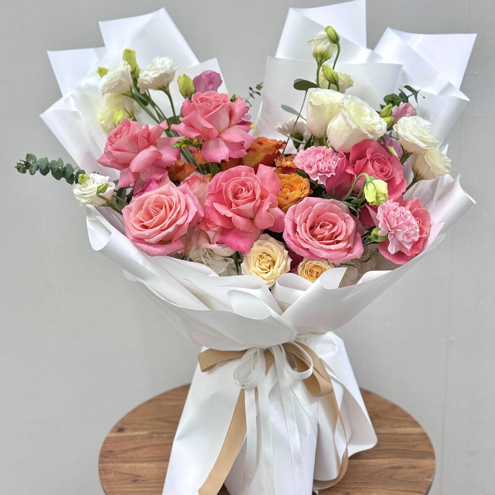 Pink White Rose Statement Fresh Bouquet