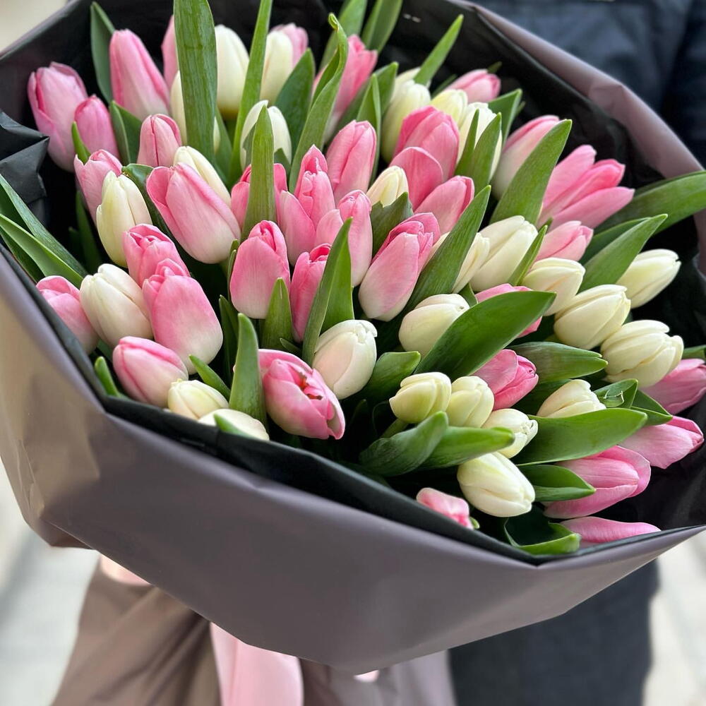 white tulip - 31 pcs pink tulip - 30 pcs in a bqt nice warpping - 5 pcs