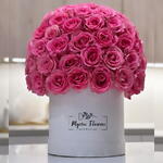 Turn up the wow-factor with this bold Pinky Round arrangement — a luxurious pink rose bouquet presented as a modern birthday box. Featuring a full, perfectly rounded dome of fresh premium pink roses (classic long-stem roses), this roses in a box design is set in an elegant white hat box for a clean, stylish finish that feels instantly special. This is one of the best birthday bouquet choices when you want unforgettable birthday flowers and premium birthday gifts in Dubai. It also makes a stunning romantic bouquet for love and romance moments, anniversaries, and heartfelt surprises, or a chic congratulations bouquet for new beginnings. If you’re looking for a premium flowers bouquet with premium quality flowers that looks trending, modern, and photo-perfect, this pink flowers box is a true show-stopper and a top pick for the best bouquet in Dubai.