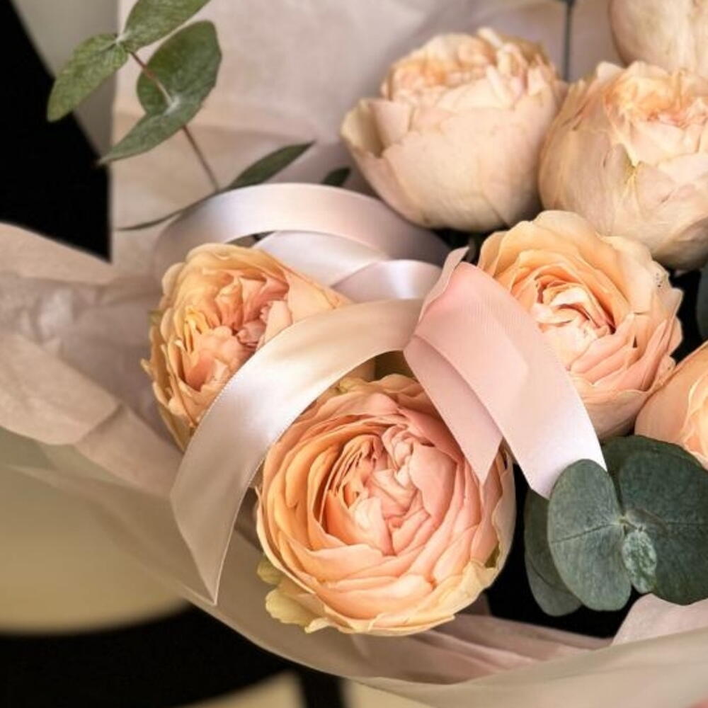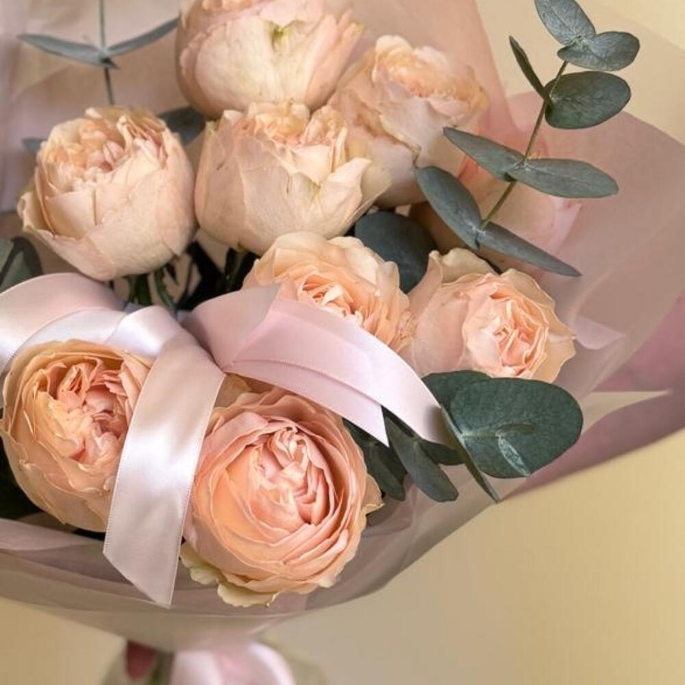 postcard - 1 pcs eucalyptus - 3 pcs krizal - 1 pcs rebbon - 1 pcs packing - 1 pcs piones rose - 9 pcs