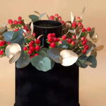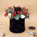 Box - 1 pcs berry - 6 pcs floral scented candle - 1 pcs gold eucalyptus leaves - 4 pcs