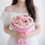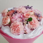 Sweet, soft, and beautifully put together—this Pastel Color bouquet is a delicate Mixed flowers bouquet wrapped in elegant pink paper and finished with a ribbon. The bouquet is designed around fluffy Pink Carnations, paired with romantic Peach Roses for that warm, loving touch. To add volume and a dreamy pastel feel, it includes a gentle cluster of Light Pink Hydrangea, and it’s finished with tiny Purple Statice filler flowers plus fresh greenery for a clean, premium look. (Some small seasonal variations may happen, but the overall style and color palette stays the same.) Made with premium quality flowers, this is a true Fresh bouquet / Fresh flowers bouquet and a lovely Premium flowers bouquet for gifting. It’s perfect as a Birthday Bouquet (ideal for Birthday flowers and Flowers for birthday), and it also works beautifully as a Congratulations bouquet with elegant Congratulations flowers. With Pink Carnations, Peach Roses, Light Pink Hydrangea, and Purple Statice, it also feels like a sweet Romantic bouquet filled with love and romance flowers—making it a great option for the best flowers for anniversary too. A stylish cool bouquet, always a trending bouquet and a truly unique flowers bouquet—perfect for anyone searching for the best bouquet in Dubai.