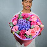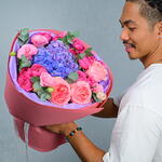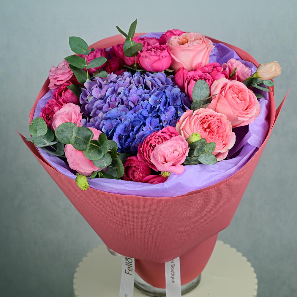 Step into a floral haven with our Posy Paradise Bouquet. This stunning arrangement brings together the softness of pink expression roses, the lush beauty of peony roses, and the delicate elegance of hydrangea, creating a harmonious and delightful display that is perfect for any occasion. Bouquet Includes: 1 Hydrangea, 3 Pink Expression Roses, 5 Peony Roses, 4 Matthiola Stems, and 3 Eucalyptus Stems. Description: The Posy Paradise Bouquet features a beautiful blend of romantic pink tones and lush textures, making it ideal for birthdays, anniversaries, or as a thoughtful gift for someone special. The softness of the pink expression roses and peony roses, combined with the fresh eucalyptus and matthiola, makes this bouquet a truly enchanting addition to any room. At Fellora Flower Boutique, we ensure that only the freshest flowers are selected to create your bouquet, keeping it vibrant and beautiful for days. Share the charm of our Posy Paradise Bouquet with someone you love or treat yourself to a luxurious floral experience!