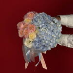 Powder Bloom: Small Bouquet of Hydrangeas, Roses and Eustomas