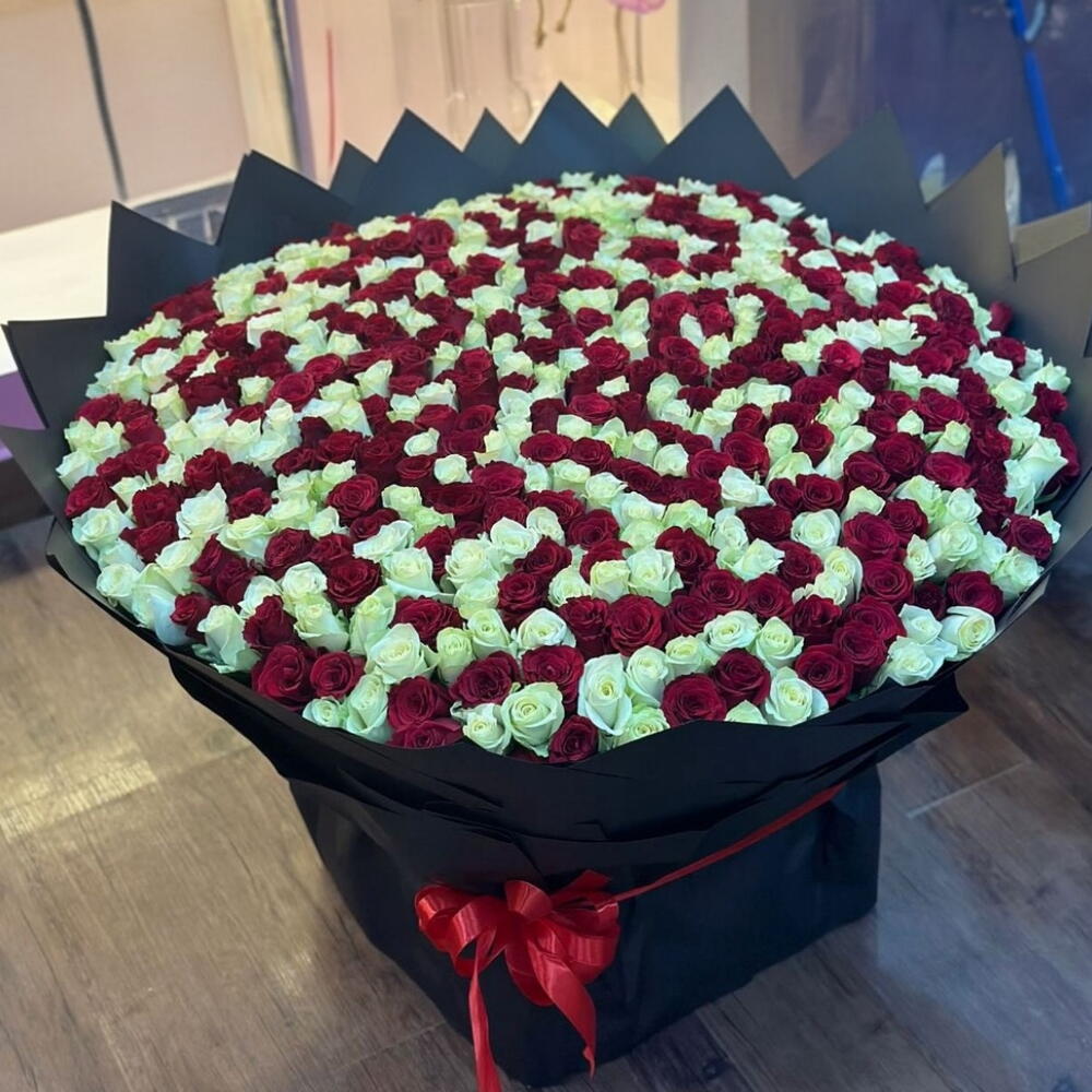 The Grand Unison: 500 Red and White Roses Bouquet 🌹🤍 Elevate your gesture beyond simple romance to one of profound Unity and Eternal Devotion with this spectacular bouquet of 500 premium roses. This is the ultimate statement, blending the passionate intensity of red with the pure elegance of white to create a visual masterpiece that is as meaningful as it is magnificent. A Symphony of Meaning and Splendor This exceptional arrangement is not just a show of wealth, but a powerful articulation of complex emotion: Red Roses (Passion Desire): The deep crimson blooms embody the unwavering depth of your romantic love and desire. White Roses (Purity Unity): The pristine white roses symbolize purity, reverence, and the eternal nature of your bond—perfect for new beginnings and enduring commitments. The Combined Message: Together, the 500 roses communicate a message of You and I are one, representing the beautiful harmony of a passionate and sincere relationship. Unrivaled Features 500 Premium Mixed Roses: A colossal bouquet featuring a breathtaking blend of red and white long-stemmed roses, each meticulously inspected for flawless color, size, and health. Voluminous Display: The sheer quantity creates an opulent, awe-inspiring arrangement that entirely dominates a room, ensuring the moment is absolutely unforgettable. Master Florist Design: Expertly hand-tied to maximize the visual impact of the two contrasting colors, often arranged in a stunning alternating or spiral pattern. Luxurious Presentation: Artfully wrapped in high-quality, contrasting paper (such as sophisticated black or elegant gold) and finished with a thick satin ribbon to match the luxurious scale of the gift. Long-Lasting Freshness: Sourced from the finest global growers to guarantee maximum vase life, allowing the recipient to enjoy the full spectacle of the 500 blooms opening over time. Perfect for Legendary Milestones This bouquet is reserved for the biggest, most significant moments in your life together: Weddings or Engagements: The perfect symbol of pure love and a passionate lifelong commitment. 💍 Major Anniversaries: A spectacular way to honor decades of enduring devotion. 🥂 Grand Apologies or Declarations: When nothing less than the absolute extreme of sincerity will do. VIP or Corporate Gifting: A display of respect, admiration, and unparalleled generosity. Make your next grand gesture a harmonious blend of passion and purity. This bouquet doesnt just send flowers—it sends a love letter written in 500 blooms. 💖