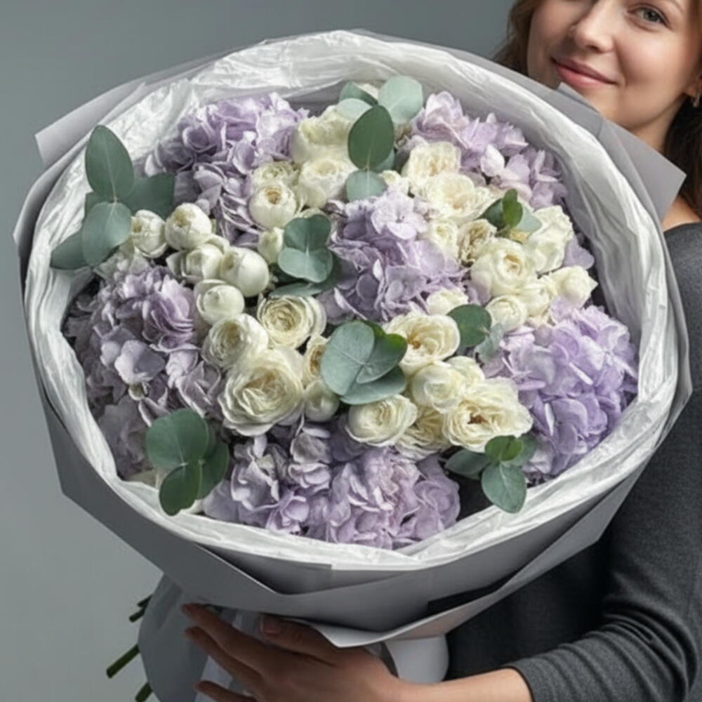 Premium Garden Roses White N Lavender Hydrangeas