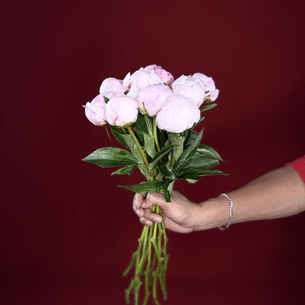 A magnificent and lush bouquet of 10 stems of premium Sarah Bernhardt Peonies. Known for their delicate texture and soft, voluminous blush-pink petals, these peonies evoke a feeling of joy, romance, and luxurious grace. They are a perfect, elegant gift to celebrate Mothers Day, birthdays, anniversaries, or to simply send a beautiful message of admiration and warm wishes.