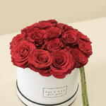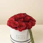 Elevate the art of gifting with this classic expression of love and sophistication. This exquisite arrangement features a lush cluster of deep red premium roses, hand-selected for their vibrant color and velvety texture. Nestled within our signature minimalist white hat box and designer ribbon, this bouquet is designed to make a lasting impression from the moment it arrives.