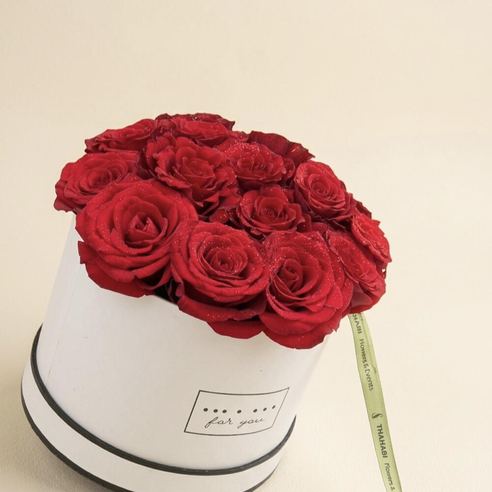 Elevate the art of gifting with this classic expression of love and sophistication. This exquisite arrangement features a lush cluster of deep red premium roses, hand-selected for their vibrant color and velvety texture. Nestled within our signature minimalist white hat box and designer ribbon, this bouquet is designed to make a lasting impression from the moment it arrives.