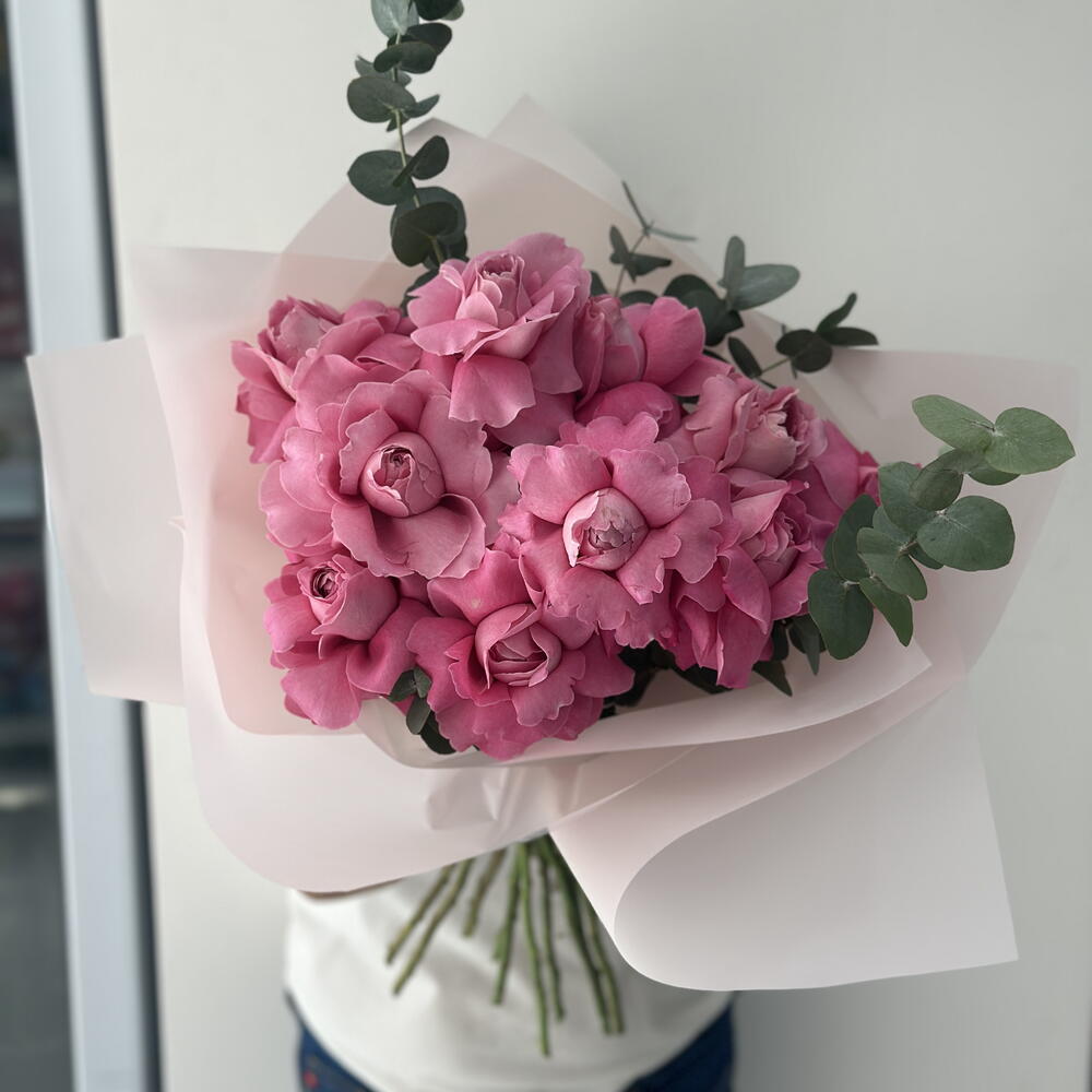 eucalyptus leaves - 4 pcs premium pink roses - 15 pcs