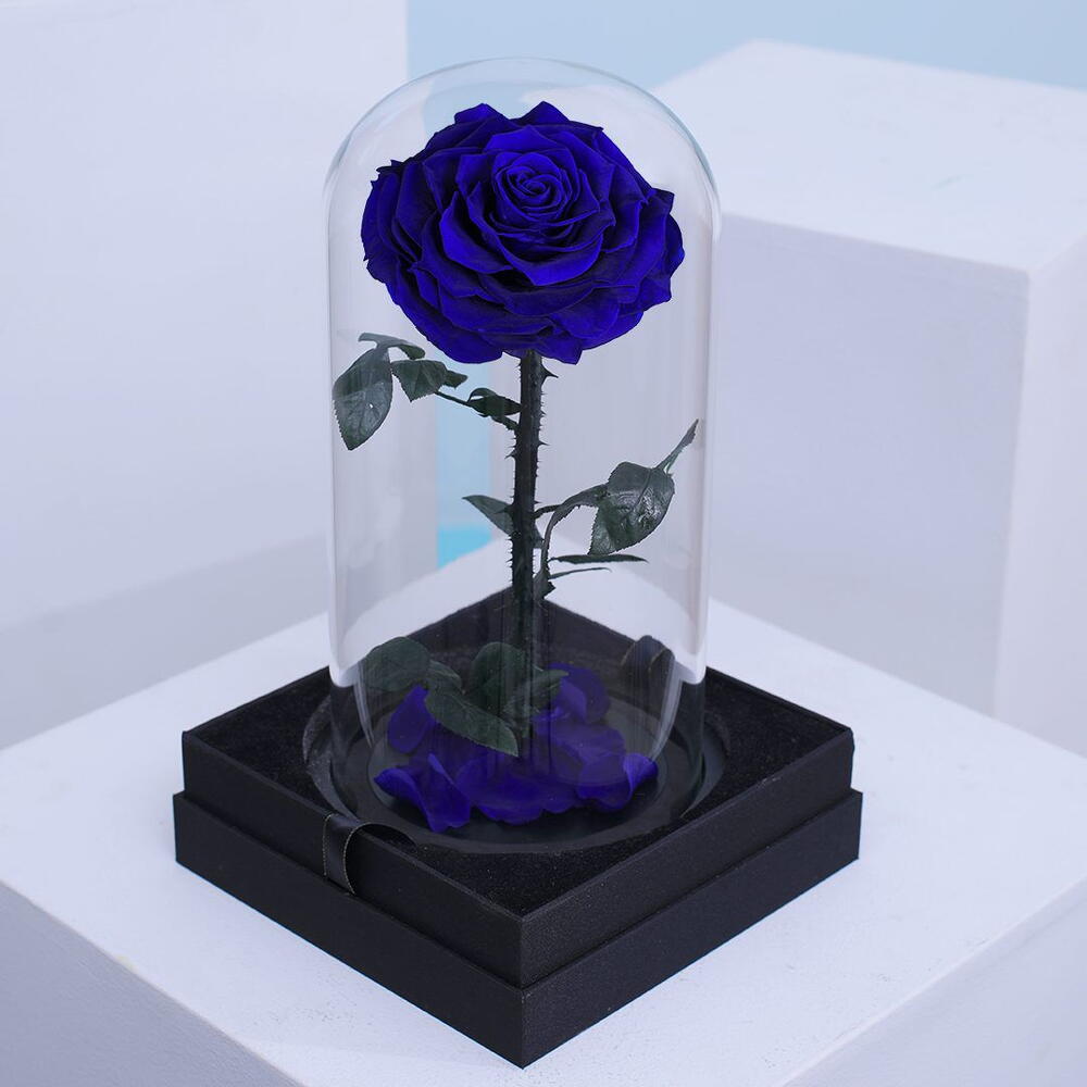 Box - 1 pcs glass dome - 1 pcs preserved blue rose - 1 pcs