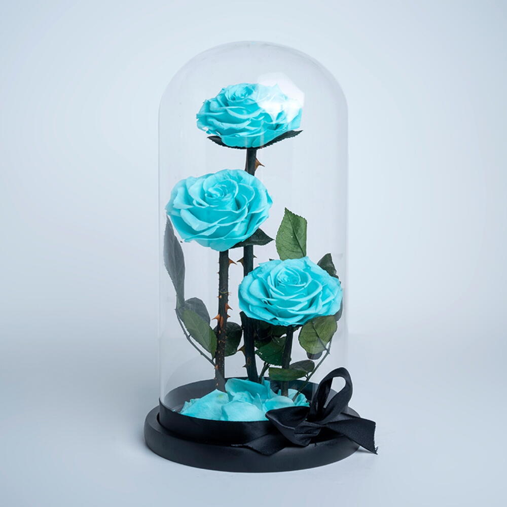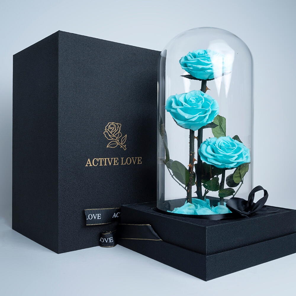 A luxury flower gift which lasts minimum 2 years. It is coming in a high quality dome vase and a premium box and delivered in a paper bag