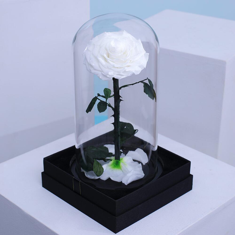 glass dome - 1 pcs bo - 1 pcs preserved white rose - 1 pcs