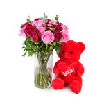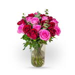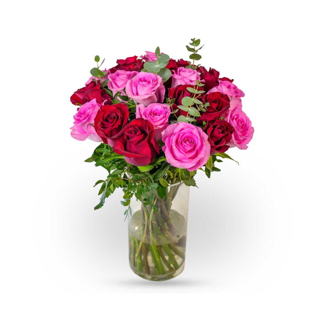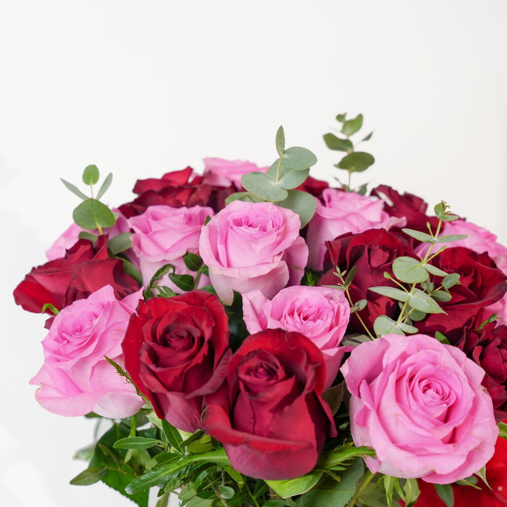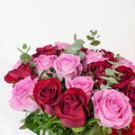 Red rose - 10 pcs Eucalyptus - 4 pcs revival pink - 10 pcs