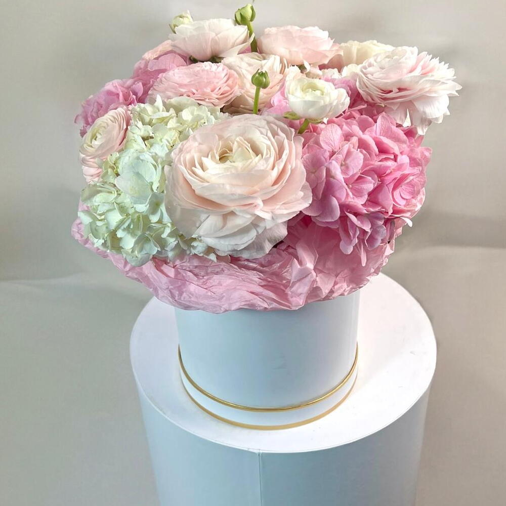 hydrangea pink - 3 pcs ranunculus pink - 10 pcs hydrangea white - 2 pcs