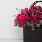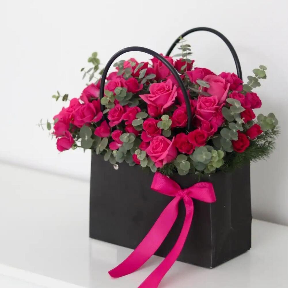 Pretty Little Things – Pink Spray Roses in Black Handbag Celebrate love with Pretty Little Things, featuring 30 pink spray roses, 10 delicate spray roses, and 10 fresh eucalyptus stems. Arranged in a sleek black flower handbag and tied with a soft blush pink satin ribbon, this bouquet blends modern sophistication with romantic charm. Perfect For • Anniversaries, Valentine’s Day, or romantic surprises • Apologies, reconciliations, or “just because” moments • Girlfriend, wife, or loved ones Why You’ll Love It • Handpicked roses and eucalyptus for lasting freshness • Chic black handbag presentation with blush ribbon • Keepsake-quality design — a bouquet and a love note in one
