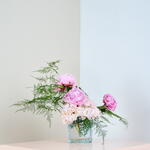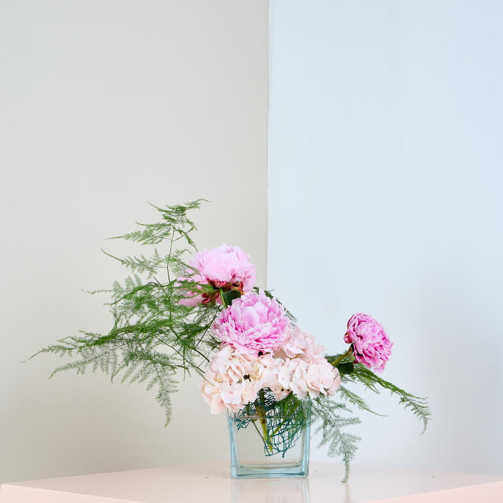 Soft, charming, and oh-so-pretty! This delightful bouquet features blushing pink peonies and delicate hydrangeas, nestled with feathery greens for a touch of whimsy. Arranged in a sleek glass vase, it’s the perfect centrepiece for a sweet gesture or to brighten someone’s day. Whether for a celebration or just because, this vase arrangement is a fresh pop of beauty sure to spread smiles. Gift Details: Hydrangea Peony Asparagus Vase