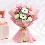 Celebrating a special occasion? Surprise your loved one with a bouquet of pristine white gerberas and fresh white and lilac roses.