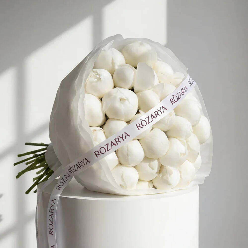 white peonies - 35 pcs luxury white "cloud" wrapping - 1 pcs