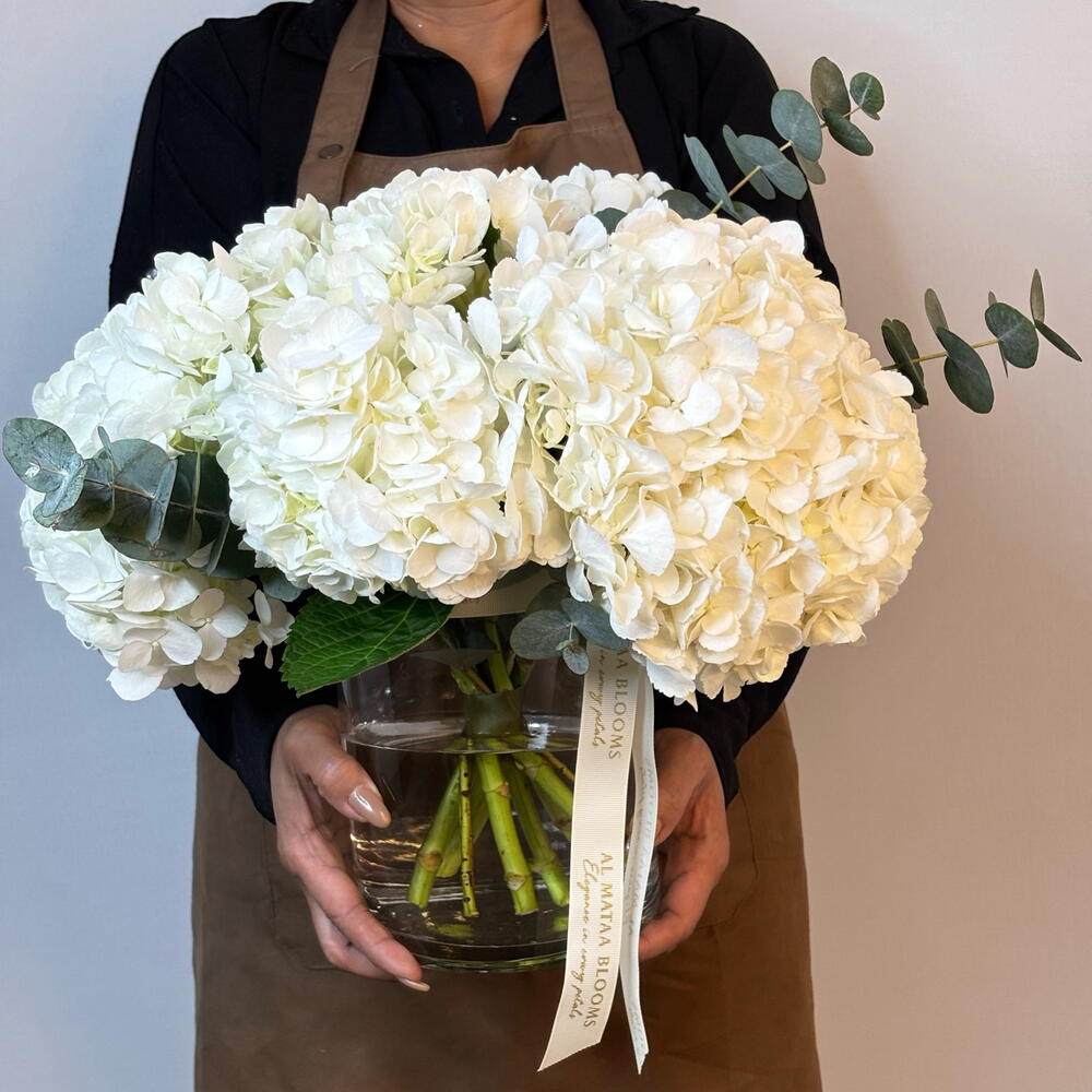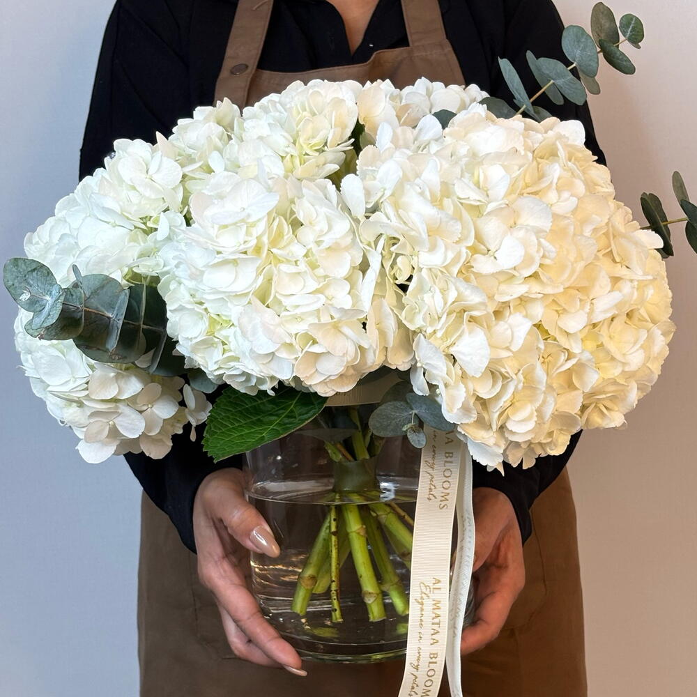 Imagine an explosion of cloud-like white petals defining sophisticated luxury. Our Pure Serenity arrangement features a breathtaking volume of premium White Hydrangeas, dramatically accented with aromatic eucalyptus foliage. It’s not just a bouquet—its an instant room transformation.