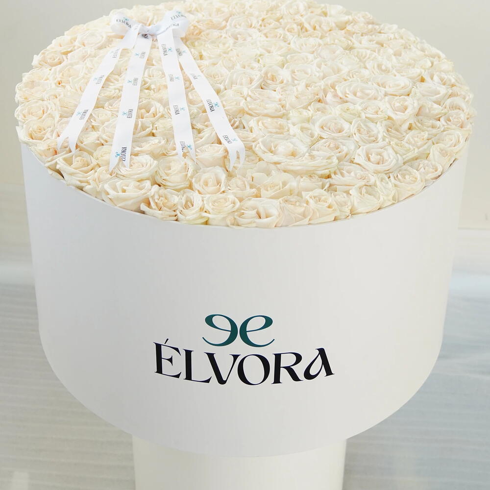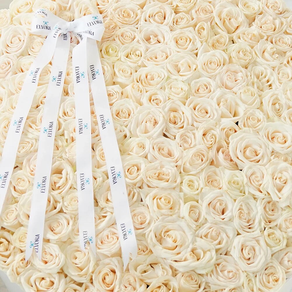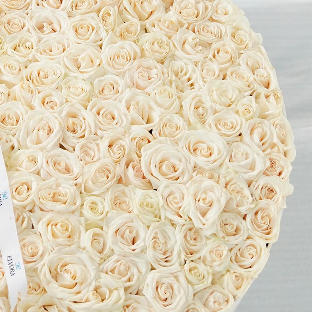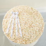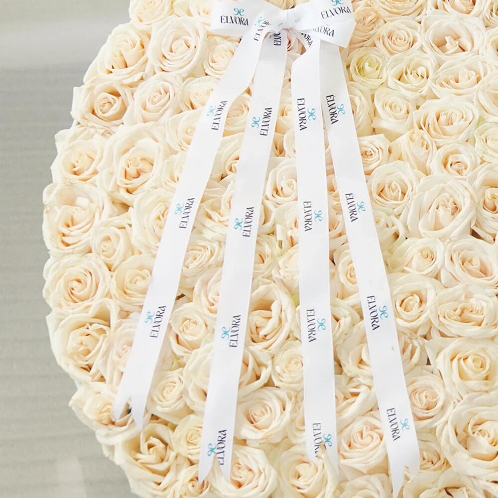 Pure Ivory roses brings serenity and balance into floral form. Soft ivory roses create a smooth, rounded surface that feels calm and effortlessly elegant. This piece tells a story of purity and quiet luxury, perfect for refined spaces and timeless occasions.