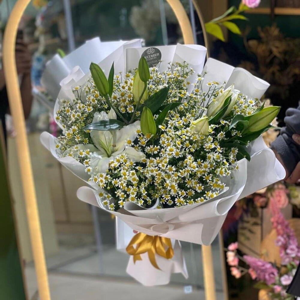 Purity bouquet _ elegant white lilies and daisises