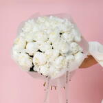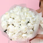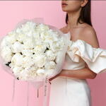 A luxurious and exquisite bouquet of pure white peonies, carefully selected from European greenhouses for their size and flawless, crystal-white color. This elegant Purity arrangement makes a stunning gift for birthdays, jubilees, or dates, and is an ideal choice for wedding decor due to its timeless, innocent beauty.