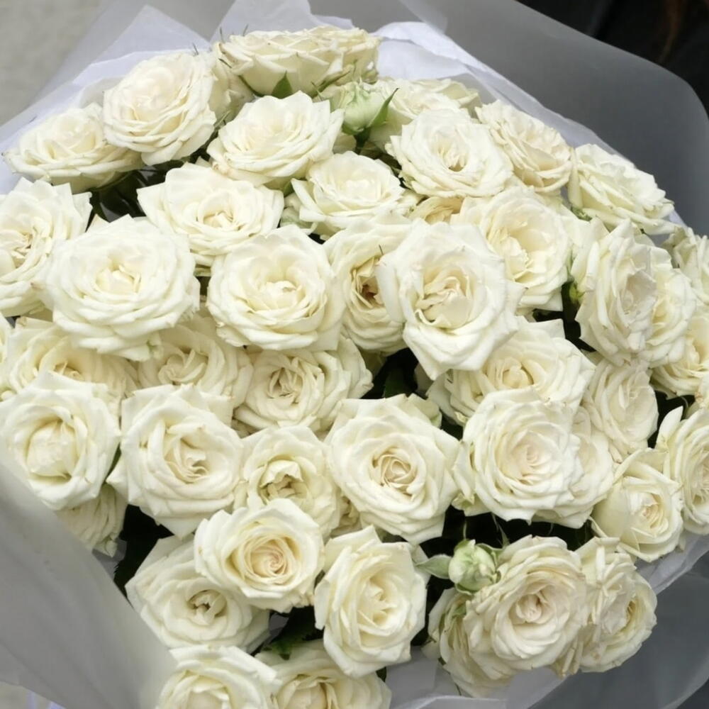 A bouquet of 49 white branch roses is a delicate and elegant composition that exudes subtlety and refinement. Branch roses with their bright white petals symbolize purity and innocence. This bouquet is perfect for various occasions, bringing freshness and elegance to any setting.