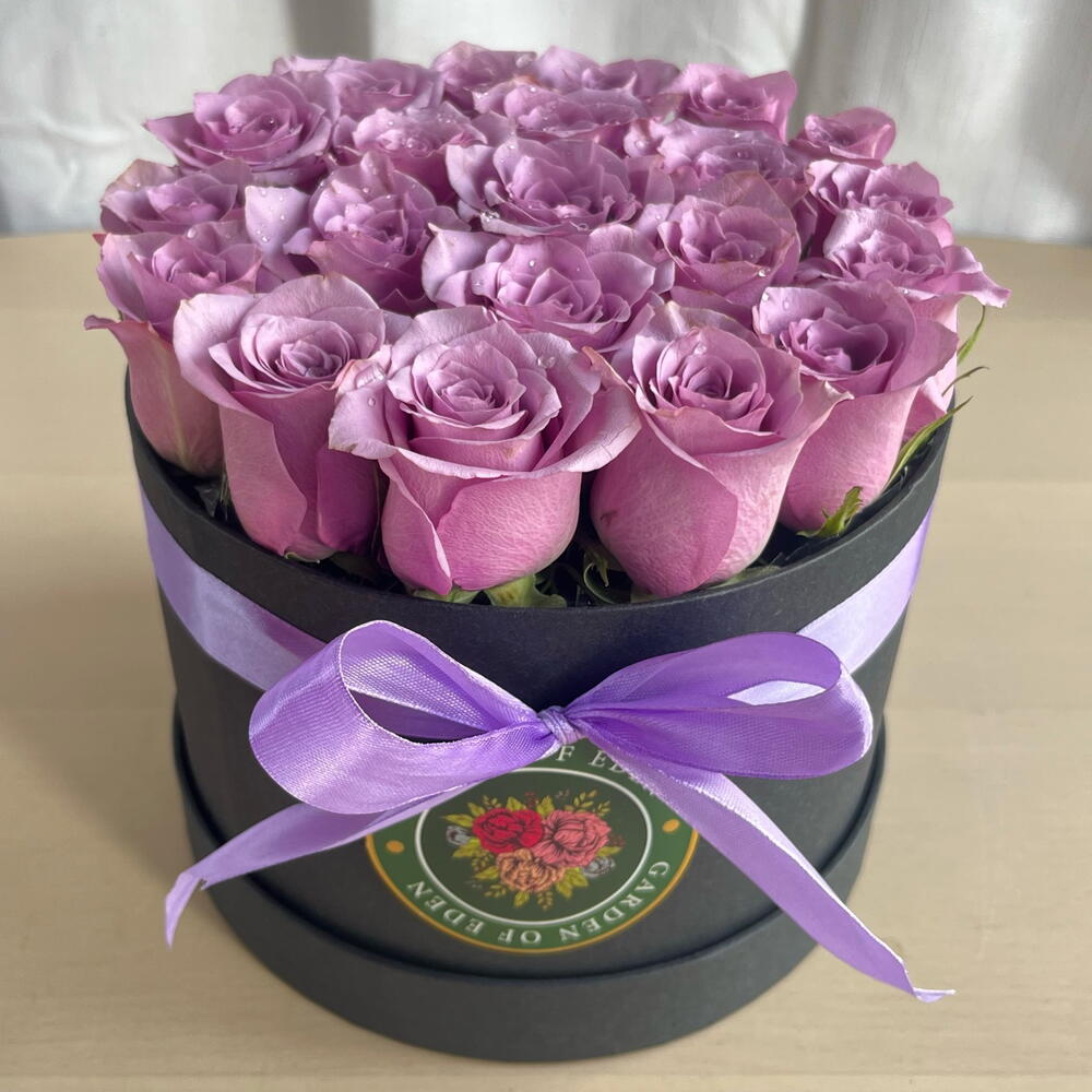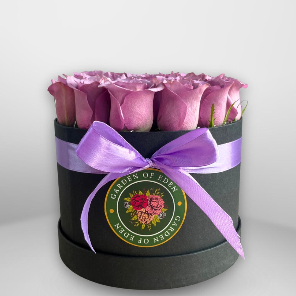 A bold and elegant arrangement of 21 premium purple roses, beautifully styled in a sleek black box and finished with a refined ribbon. Purple roses symbolize admiration and charm. These blooms are professionally treated for rich, lasting color, making them ideal for birthdays, anniversaries, luxury gifting, and statement moments. Designed to impress from the first glance.