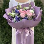 Composition: Lilac - 3, Hyacinth - 4, Ranunculus - 6, Lisianthus - 5, Brunia - 4, Eucalyptus - 2, wrapping - 6, ribbon - 1 Sizes: WIDTH - 55CM; HEIGHT - 65CM; LENGTH - 65CM; (including packaging) Size: 55 x 65 x 65 cm