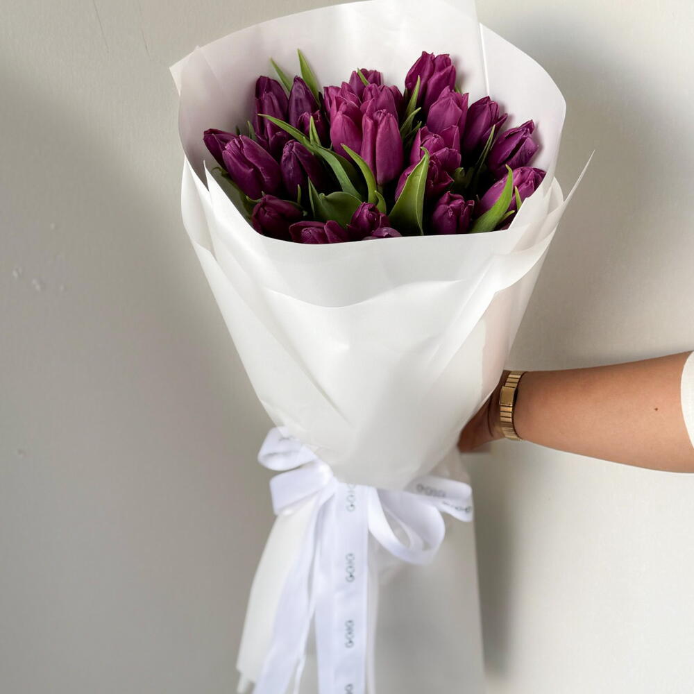 Immerse yourself in a world of magnificence with our sumptuous bouquet of thirty purple tulips. Hand-picked from the freshest tulip blooms, these elegant blossoms make a perfect statement piece that will add a splash of vibrant panache to any room. Its not just a simple bouquet, but a florists special collection, carefully crafted to bring you the ultimate floral experience.