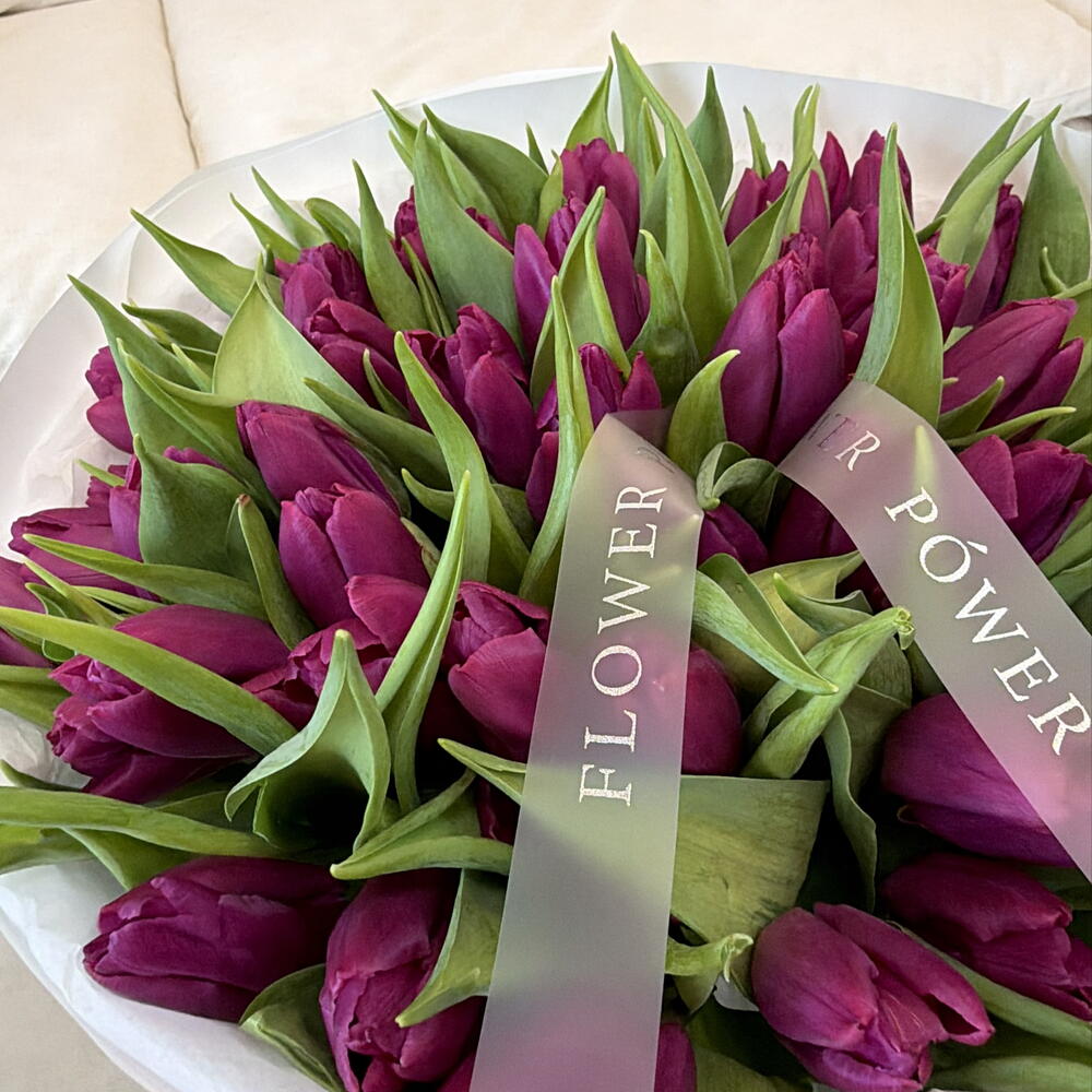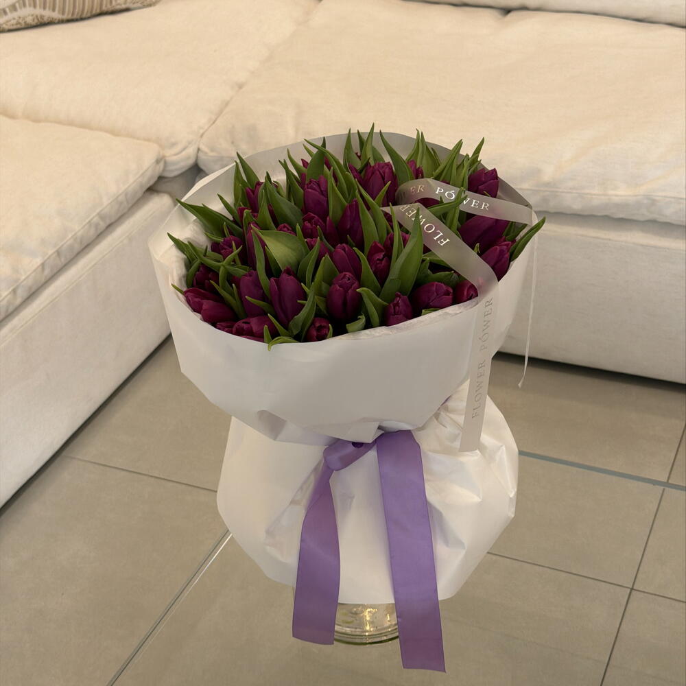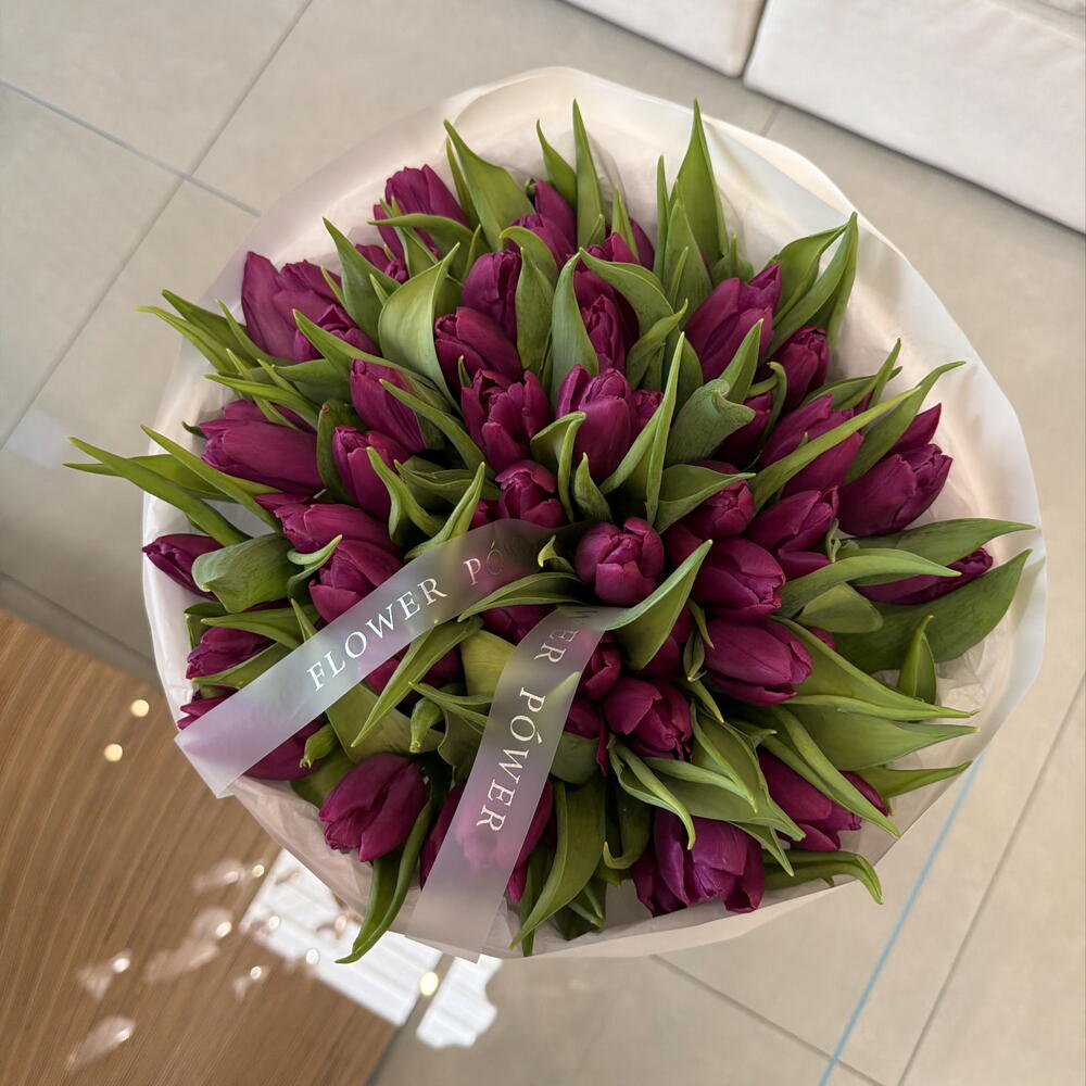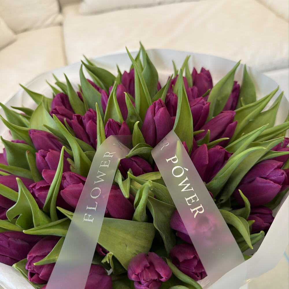 A classic bouquet of 50 fresh tulips — elegant, stylish, and always appropriate. Tulips are known for their delicate shape, smooth stems, and graceful silhouette, creating a light and refined floral arrangement.