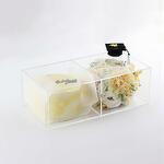Combination of Carnation , lisianthus and other mix of flowers arranged with 300g cake in an acrylic box