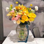 Snapdragon - 3 pcs Lily - 3 pcs Yellow rose - 4 pcs lisianthus white - 5 pcs craspedia - 4 pcs juliet rose - 2 pcs yellow spray rose - 2 pcs celosia yellow - 3 pcs cybidium - 4 pcs