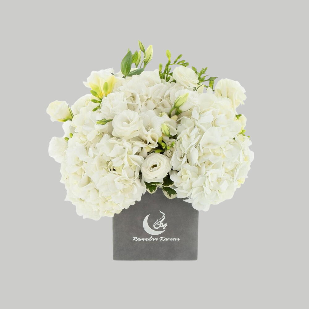 A garden of all-white flowers to bring joy and blessings to your loved ones and colleagues to send warm wishes during the holy month. Spreading the joy, Ramadan Kareem! (empty box size 15x15cm)