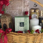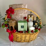 Eucalyptus - 3 pcs Basket - 1 pcs ferrero rocher chocolates - 1 pcs scented candle - 1 pcs red spray roses - 2 pcs ramadan lantern - 1 pcs prayer mat - 1 pcs patchi chocolates (250 g) - 1 pcs aromatic musk room fragrance - 1 pcs