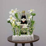 Combination of Tulip, Daisy and other mix of flowers with vimto arranged in a Acrylic Tray