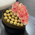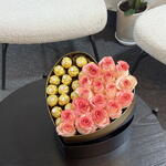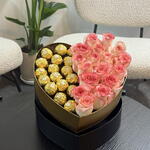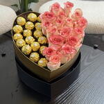 Experience the unique blend of elegance and sweetness with our meticulously arranged Flowers in a Box. Each box features 18 pink roses, known for their exquisite beauty and soft, gentle hue, evoking feelings of adoration and fascination. While the natural splendor of these flowers captivates your senses, prepare to be further indulged with 12 pieces of our decadently rich and delectable Roses chocolates. This combination of aesthetic beauty and gastronomic delight makes this arrangement the perfect gift for your loved ones or a spectacular centerpiece for your living space. Experience sheer bliss with every box