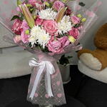 lily oriental pink - 2 pcs lisiantus pink - 6 pcs magic times pink roses - 8 pcs pina colada chrysanthemum - 5 pcs