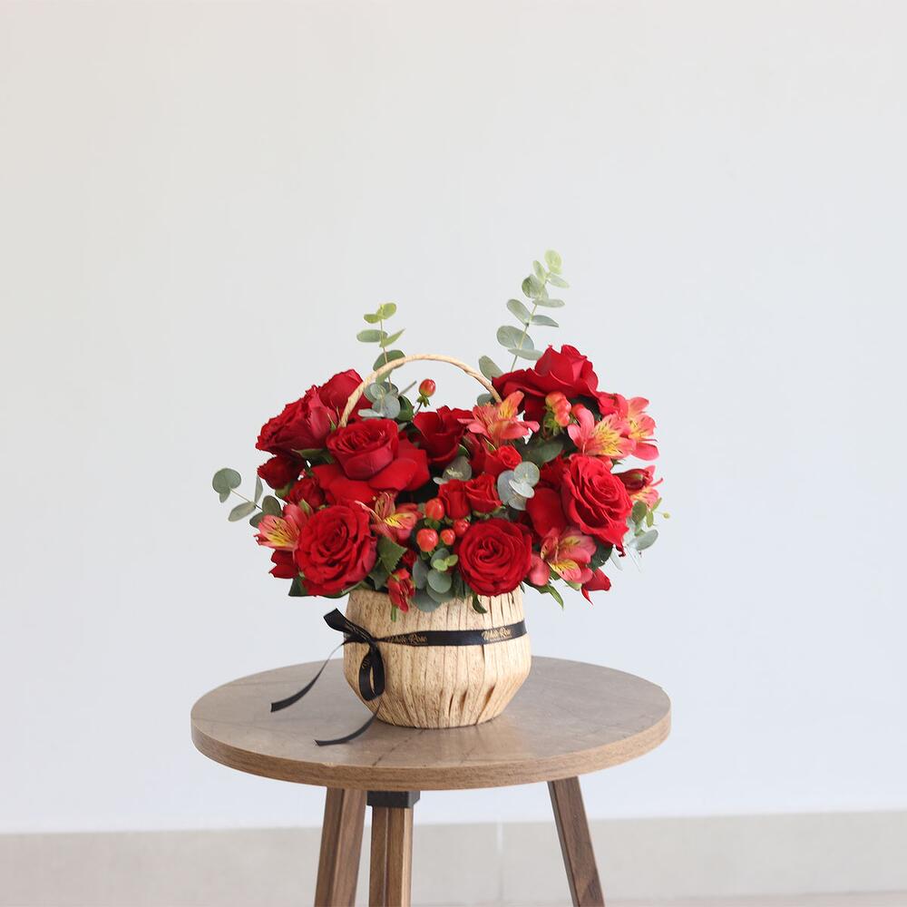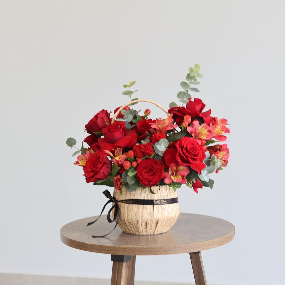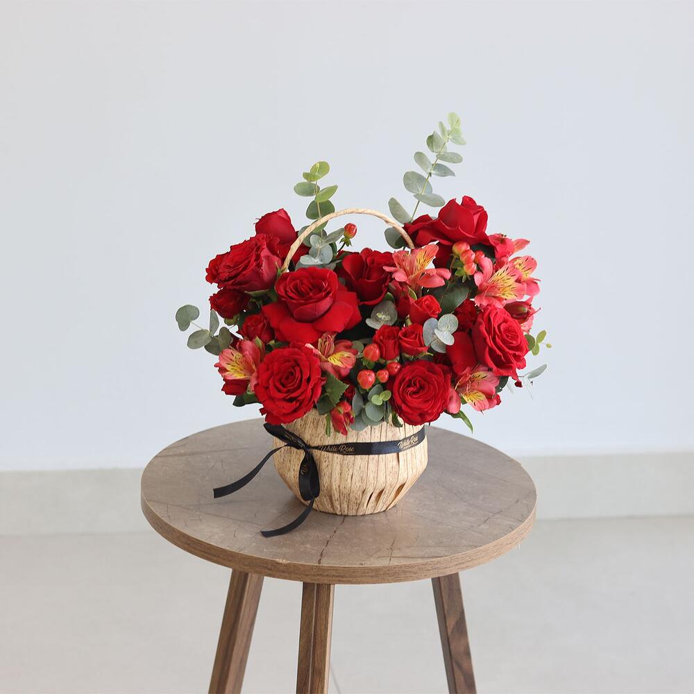 Alstroemeria - 4 pcs Basket - 1 pcs baby rose - 4 pcs roses - 8 pcs