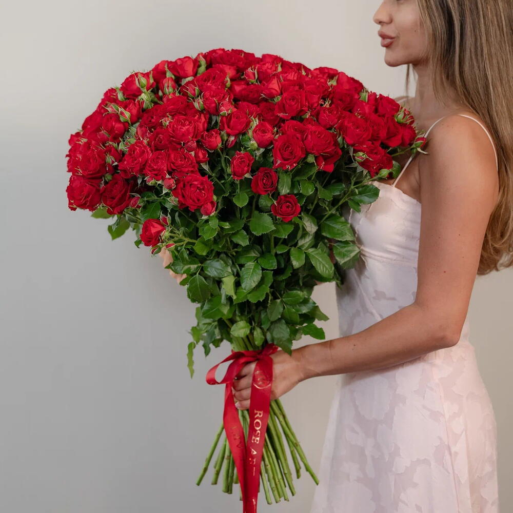 A grand bouquet of 51 premium red spray roses, arranged to create a massive, voluminous look that instantly captivates. Known as Red Bubble, these spray roses are admired for their rich clusters, long stems, and natural fragrance. A bouquet of grand passion, perfect for expressing deep love, anniversaries, romance, heartfelt gratitude, or passionate celebrations. Also a striking choice for thank you gestures, birthdays, or making a bold statement of affection. ✅ Grand Passion Collection ✅ 1-Hour Express Delivery (Dubai) ✅ Freshly Cut, Hand Delivered ✅ Long-Stem Premium Roses ✅ Fragrant Blooms ✅ Free Delivery Included