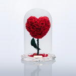 Express boundless love with Red Heart Rose Immortal: a lush heart-shaped arrangement of preserved roses in a generous crystal dome. Choose from 12 captivating colors. This grand gesture maintains its beauty for up to 5 years, perfect for anniversaries or as a luxurious gift. Impressive size with a 3-year warranty.