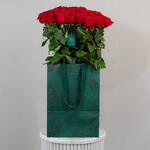 tag - 1 pcs red roses - 51 pcs protective wrapping - 1 pcs hydration pack - 1 pcs branded premium carry bag - 1 pcs personalized message envelope card - 1 pcs branded rose art ribbon - 1 pcs