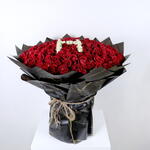 Red passion bouquet. When you see this bouquet, you will feel shocked by its beautiful size, but when you see the letter of your loved one’s name in the middle, be sure that he will feel your passion for him. This bouquet consists of 200 red roses with black packaging and a rope for the tie, in addition to a letter of your choice in the middle in white.